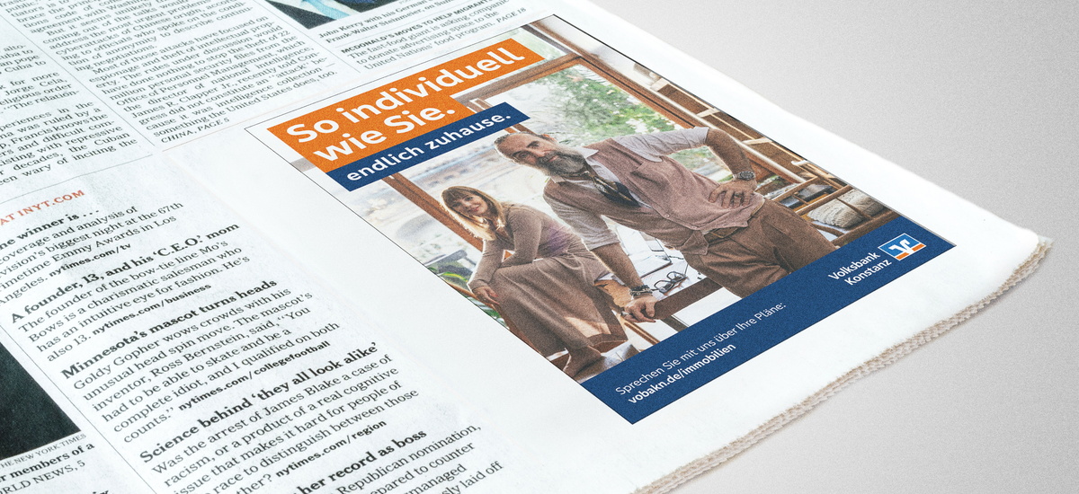 Als Agentur hinter dieser Kampagne haben wir diesen Claim gemeinsam mit der Volksbank Konstanz entwickelt, um das Lebensgefühl in den Mittelpunkt zu rücken, das entsteht, wenn aus einer Immobilie ein echtes Zuhause wird. Unsere kreative Umsetzung stellt die Menschen und ihre Geschichten in den Vordergrund – und macht die Immobilienkompetenz der Volksbank Konstanz emotional erlebbar.